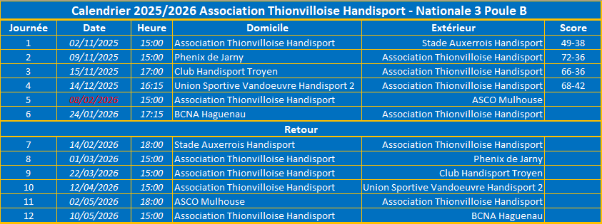 Le match contre Mulhouse prévu dimanche 10/01/2026 15h au gymnase de la Plaine est reporté au 08/02/26 15h !