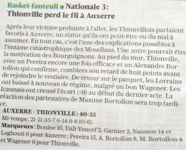 Défaite 40-35 à Auxerre ce weekend pour nos basketteurs ![]()